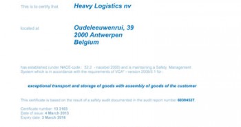 Heavy Logistics obtained the VCA*-certification