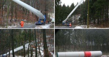 Wind power plant erection in woodlands with SCHEUERLE rotor blade adapter