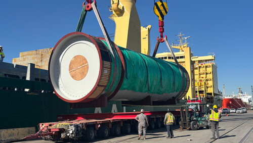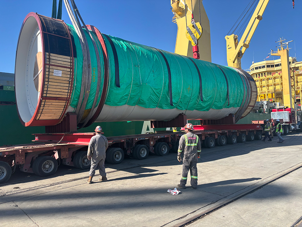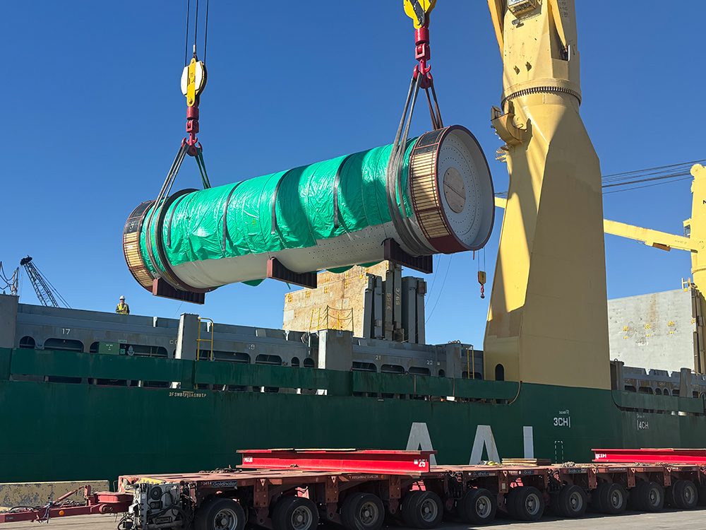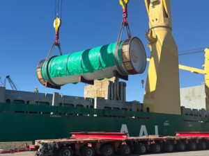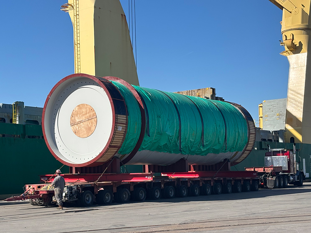 The heavylift unit was safely discharged directly from the arriving ocean vessel on to specialized trailer, minimizing handling and ensuring operational efficiency. The cargo is being transported to a Fly Ash Processing Plant in North Dakota.