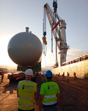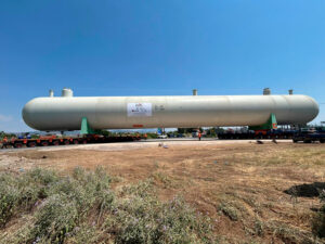 “One of our biggest projects yet. Cosmatos Group is proud to announce the successful delivery of three propylene storage bullet tanks, each up to an impressive 650 tons, loaded from Thessaloniki Port and safely discharged at Soussaki Port.