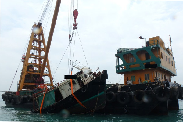 For a marine salvage operation Wangfoong arranged for a barge, tug boat, outboard dinghy, diving crews for salvage works, underwater video capture, experienced diving teams, marine operation and a diving report to a surveyor.