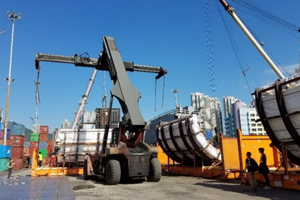 For a shipment of used TBM machine and parts for a landfill in Tseung Kwan O, Hong Kong, Wangfoong arranged for the pick up of loose cargo from the project site to their yard for storage and load onto FR/OT equipment, fulfilled the lashing requirements by carrier for export in 6 x 40′ FR (OWOG), 2 x 40′ OT (IG), 1 x 40′ HC.