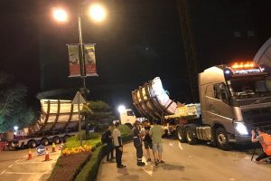 Machinery on a 40’FR OW was received from HK Terminal. Wangfoong provided escort cars, a trailer with wide-load permit, route planning, road survey before delivery and delivery to the Asia Air Terminal within night hour operation. A delivery survey to their client completed the task required.