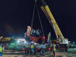 The greatest challenge was the specific port delivery. Most of container vessel operators declined to handle the shipment due to port capacity for the 4.94 meter cargo width. Track length restrictions and moving all of the construction equipment in one single lot created a challenge considering customs restriction at the receiving port.