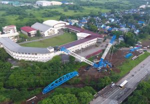 Royal Cargo’s newly acquired Liehbherr LR 1600/2 (600T) crawler crane completed the lifting of the Laguna Water pipeline bridges for the Linkenergie Group on its successful inaugural lift in Sta. Rosa, Laguna July 9, 2017.