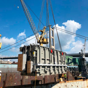 - Equipment mobilization includes feeder vessels, floating crane barge, SPMT, heavy trailers