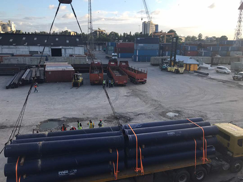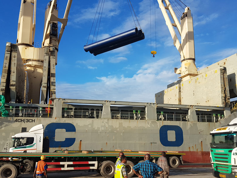 These pipes were discharged in Dar Es Salaam Port and loaded directly onto trucks carrying tailor-made wedges with final destination Ndola.