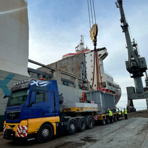Cosmatos Shipping took care of the ship’s husbandry, the unwelding and unlashing operations, the stevedoring and cranage as well as part of import customs formalities. The company also arranged for the temporary storage of the main transformer at the Port open area as well as the accessories to a covered area.